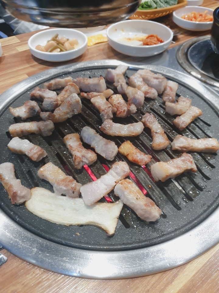 삼겹살이 너무 땡겨서 일단 삼겹살을 시켰어요